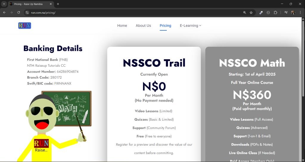 Designed and developed the official website for Raise Up Namibia, an educational and empowerment platform offering learning resources, quizzes, and youth development content. The project emphasized accessibility, engaging visuals, and a user-friendly layout to support both mobile and desktop experiences. Key features include categorized learning materials, interactive assessments, and integrated social engagement tools. The site was built to be scalable and easy to maintain, aligning with the organization’s mission to educate and uplift Namibian youth.